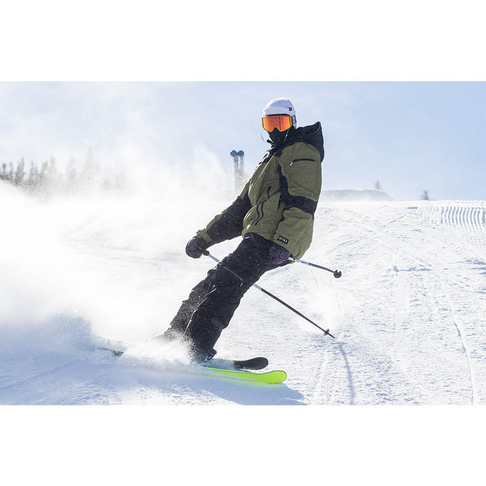 - Elastic powder skirt & wrist gators (with thumb holes) to keep the snow out